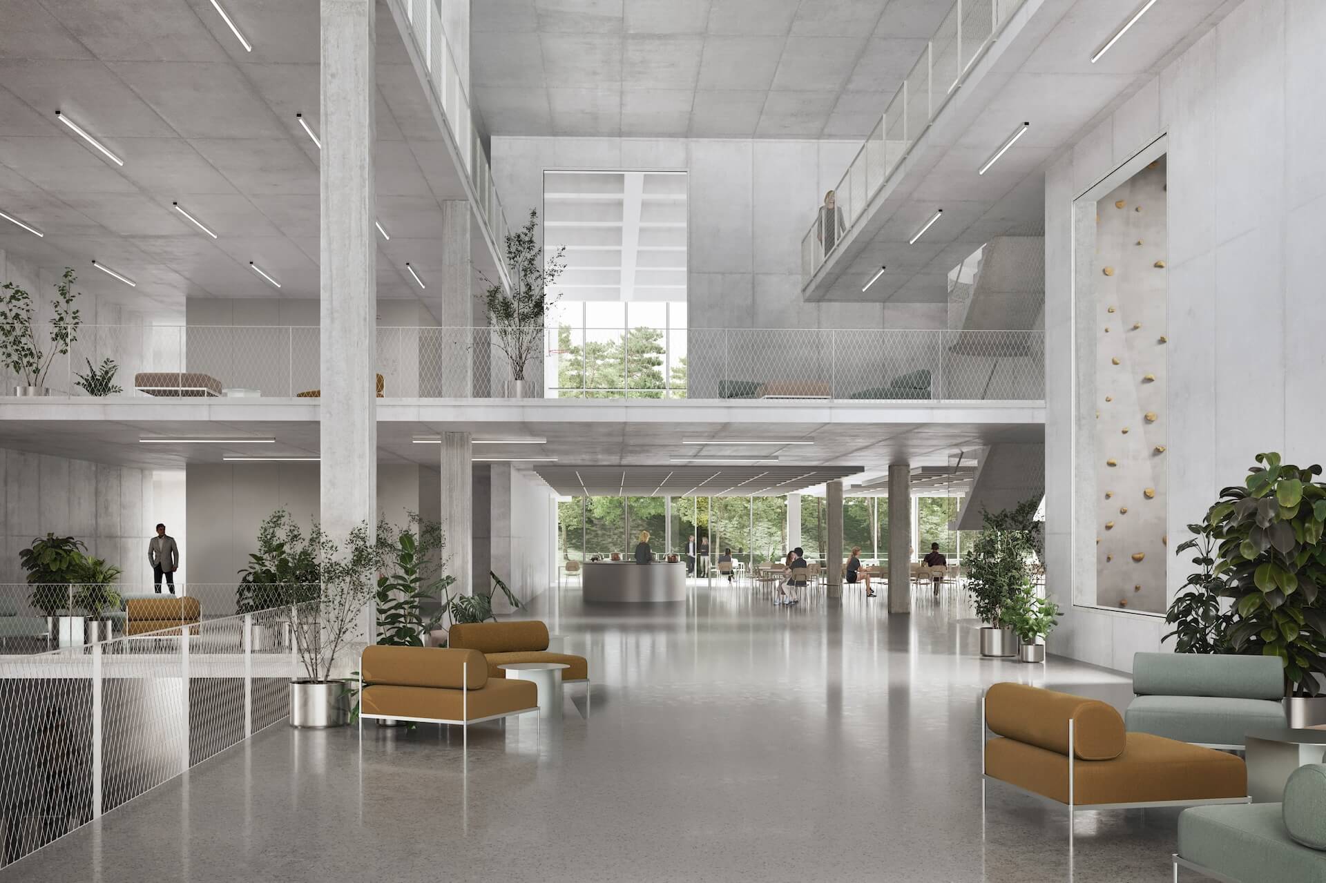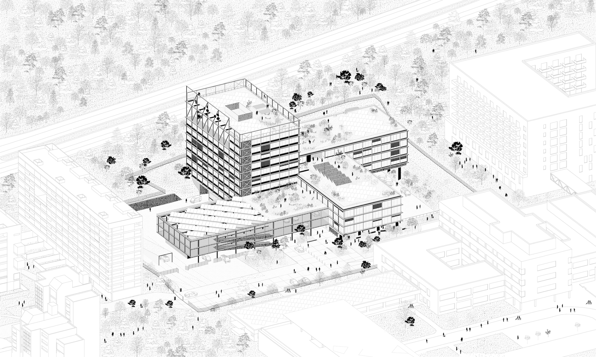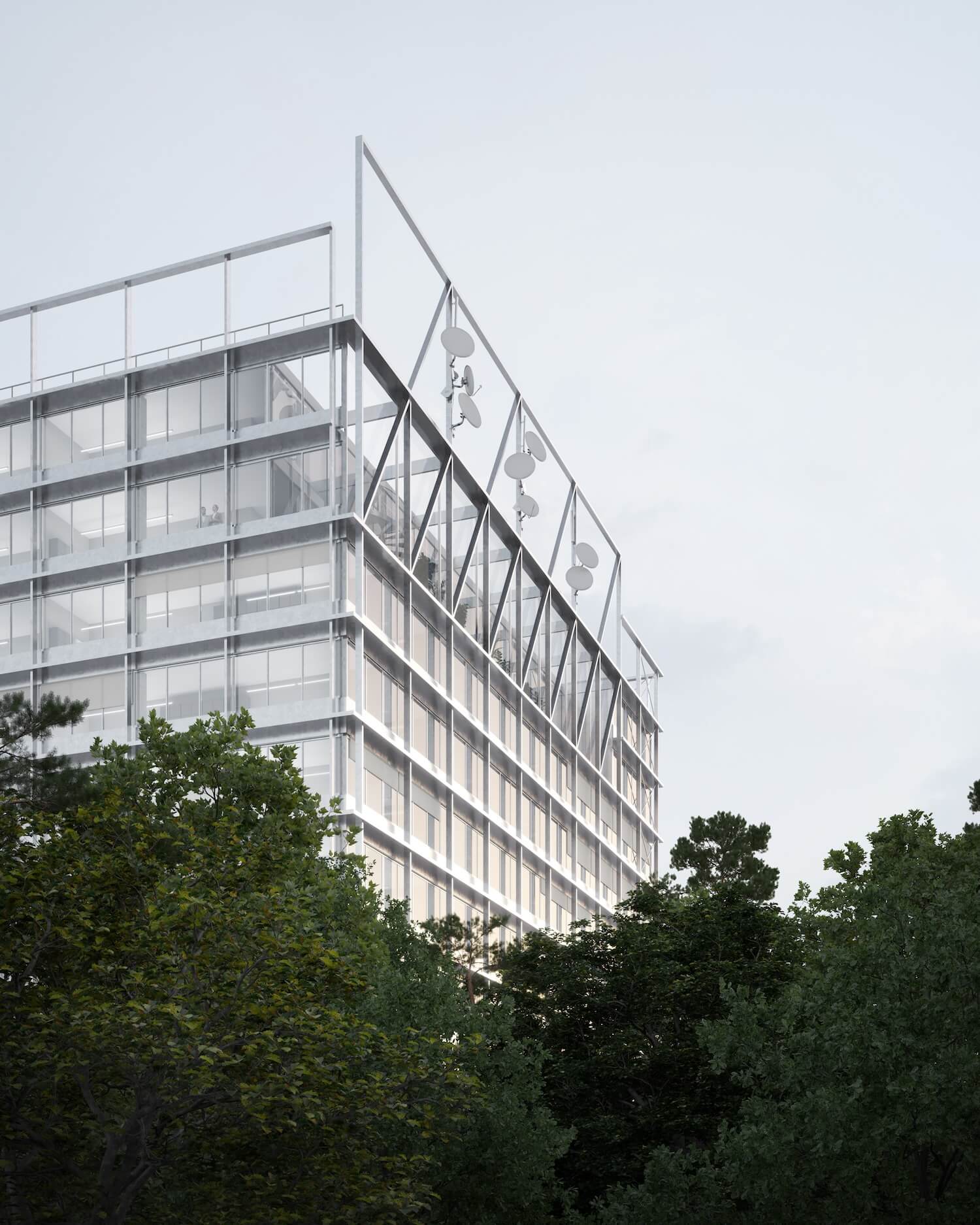 The administrative-technical building of the Emergency Medical Service will be the primary base for all Prague emergency medical service groups, so the topic of “communication” is a key part of our proposal. Whether it is virtual, operational or interpersonal communication, in all cases it has the potential to save lives. A safe, smart and efficient organization of the house has therefore become an essential prerequisite of the design. The answer lies in the spiral motif that ascends through the various safety levels of the program, forming the basic backbone for the organization of the entire house.
