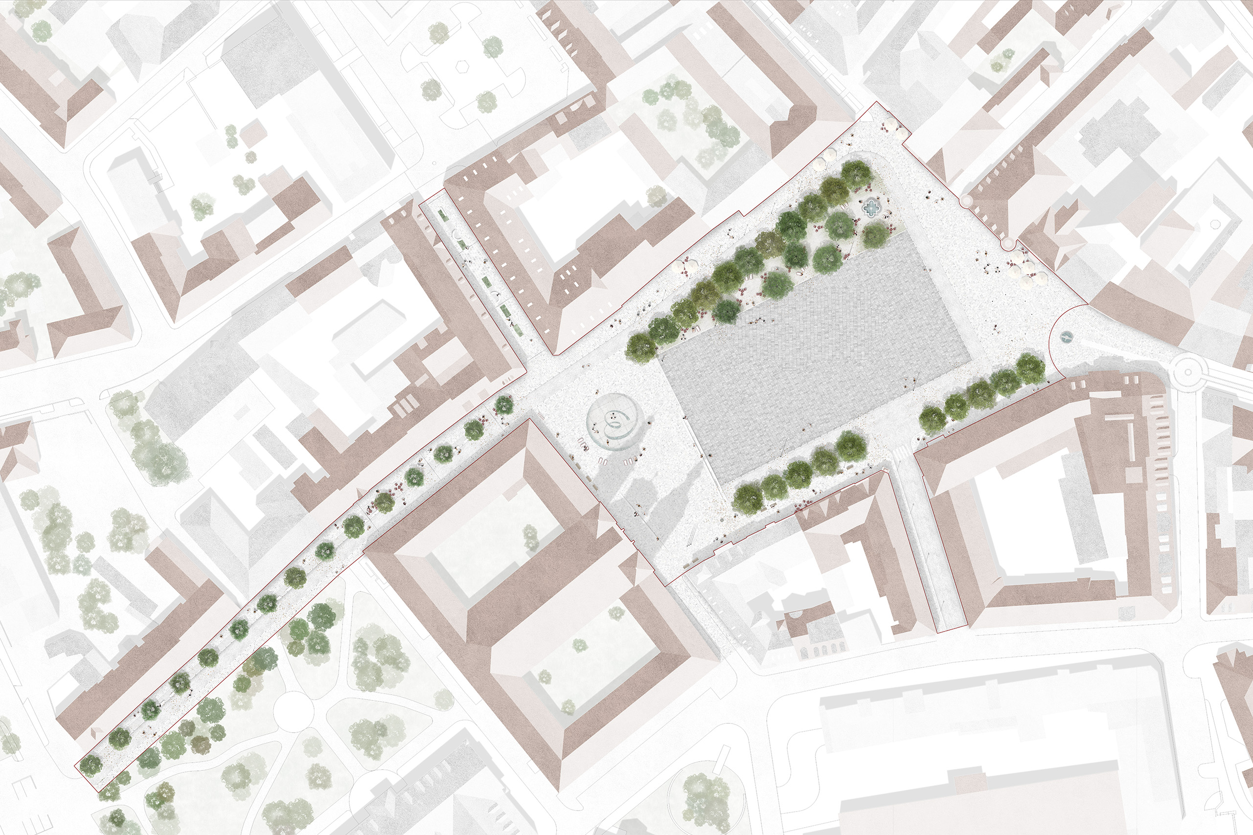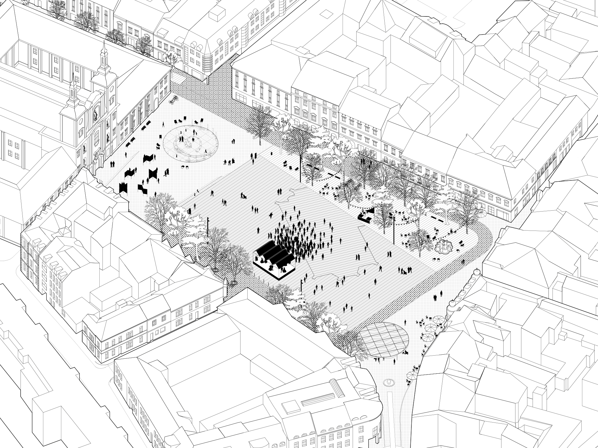 How to improve a public space that does not need much improvement? Instead of a total redesign of Masaryk Square in Uherské Hradiště, we decided to build on its current qualities. Our inspiration came primarily from the legendary richness of Uherské Hradiště’s cultural life. The core of the spatial concept thus becomes a clearly defined central rectangular space – a multifunctional public platform – which generates “pockets” of diverse characteristics around it, functioning as the entrance spaces of the surrounding streets and the forecourts of important buildings. The square is thus not just one – there are five of them.