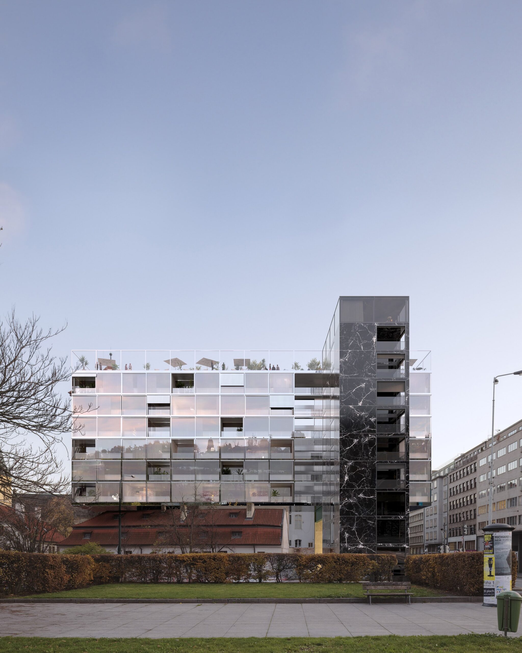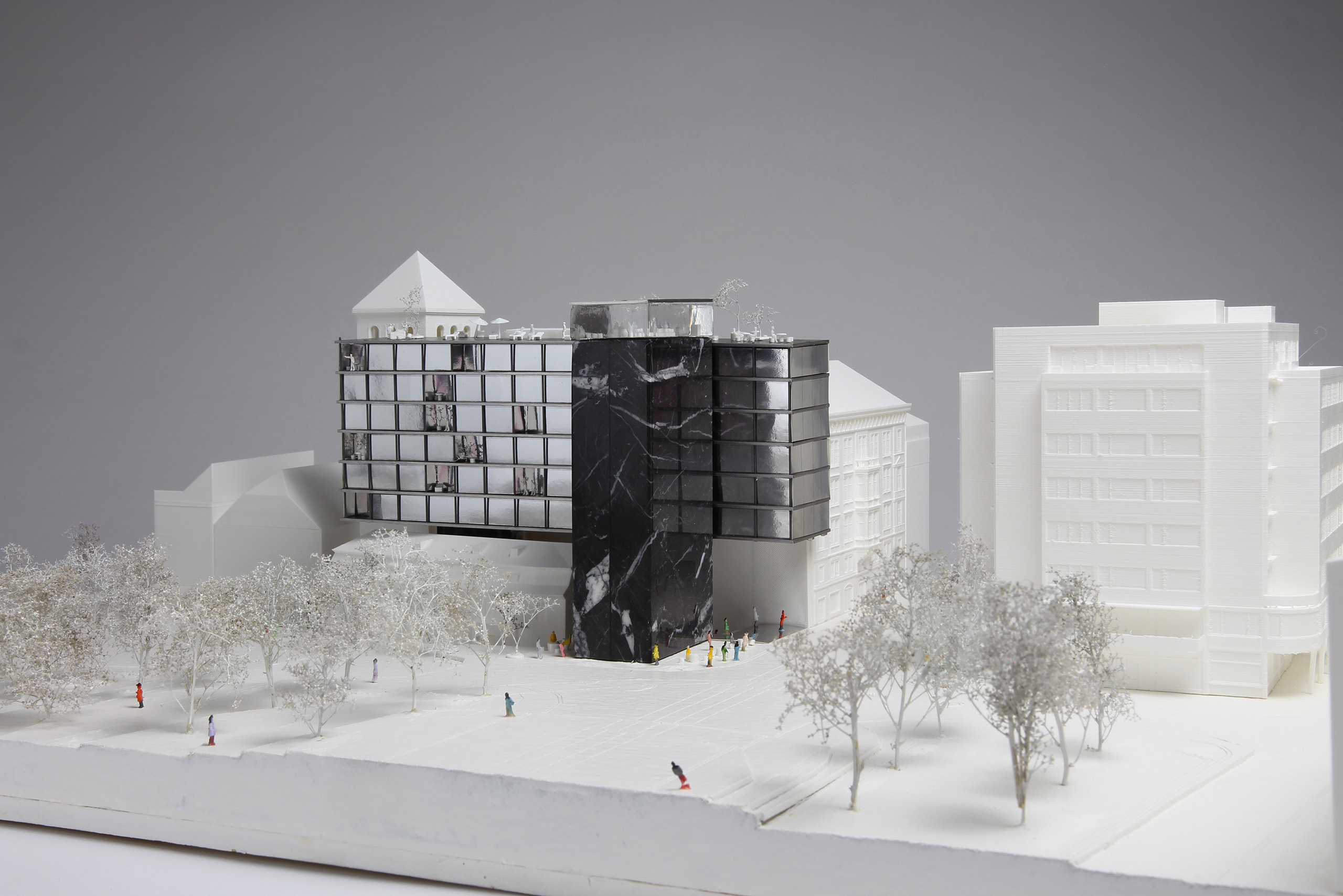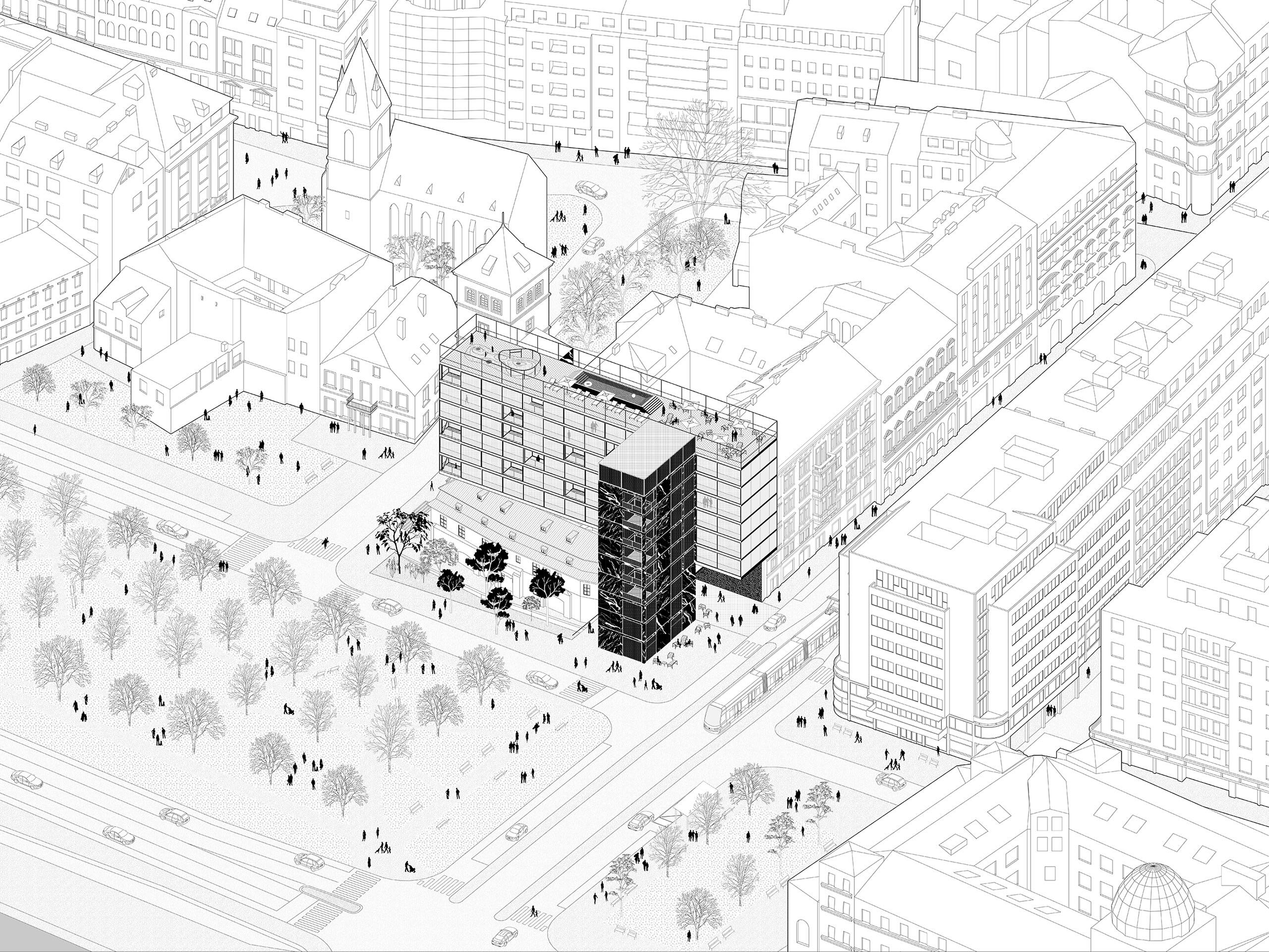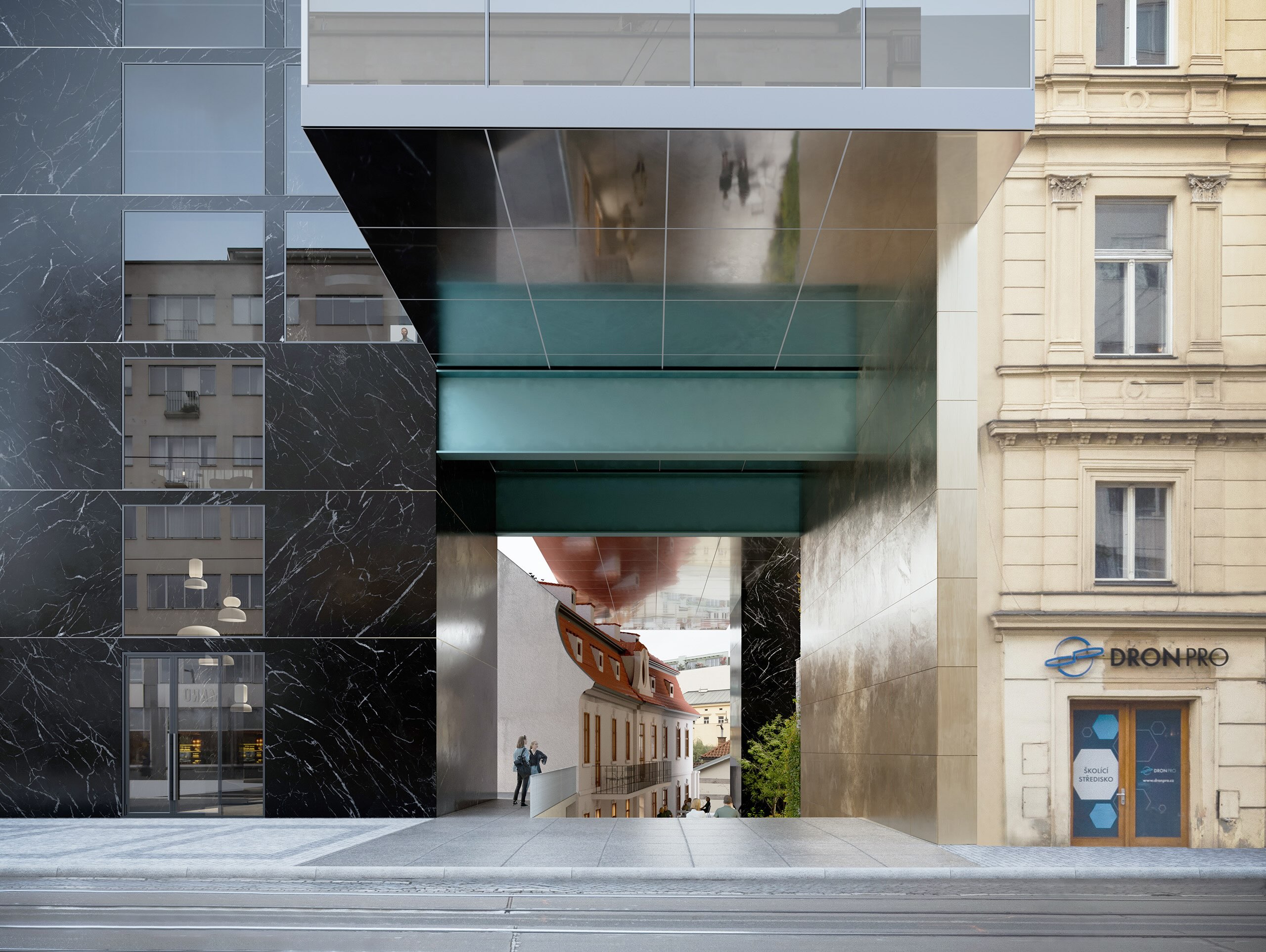Since the 1940s, when the Elisabeth’s Baths disappeared from Prague’s map, the corner plot on Revoluční Avenue has been the subject of lively architectural debates. Originally part of a row of townhouses, this site was transformed into a prominent location that frames the view of the historical city center when approached from Štefánik Bridge. In 2023, an international architectural competition was announced for this location, reopening the question – after more than eighty years – of how to address this key gateway to the city and how to conceive a “city gate” in the 21st century. Our proposal, developed in collaboration with the Paris-based Studio Muoto, was awarded the first place in the competition and is now undergoing the phase of negotiation.
