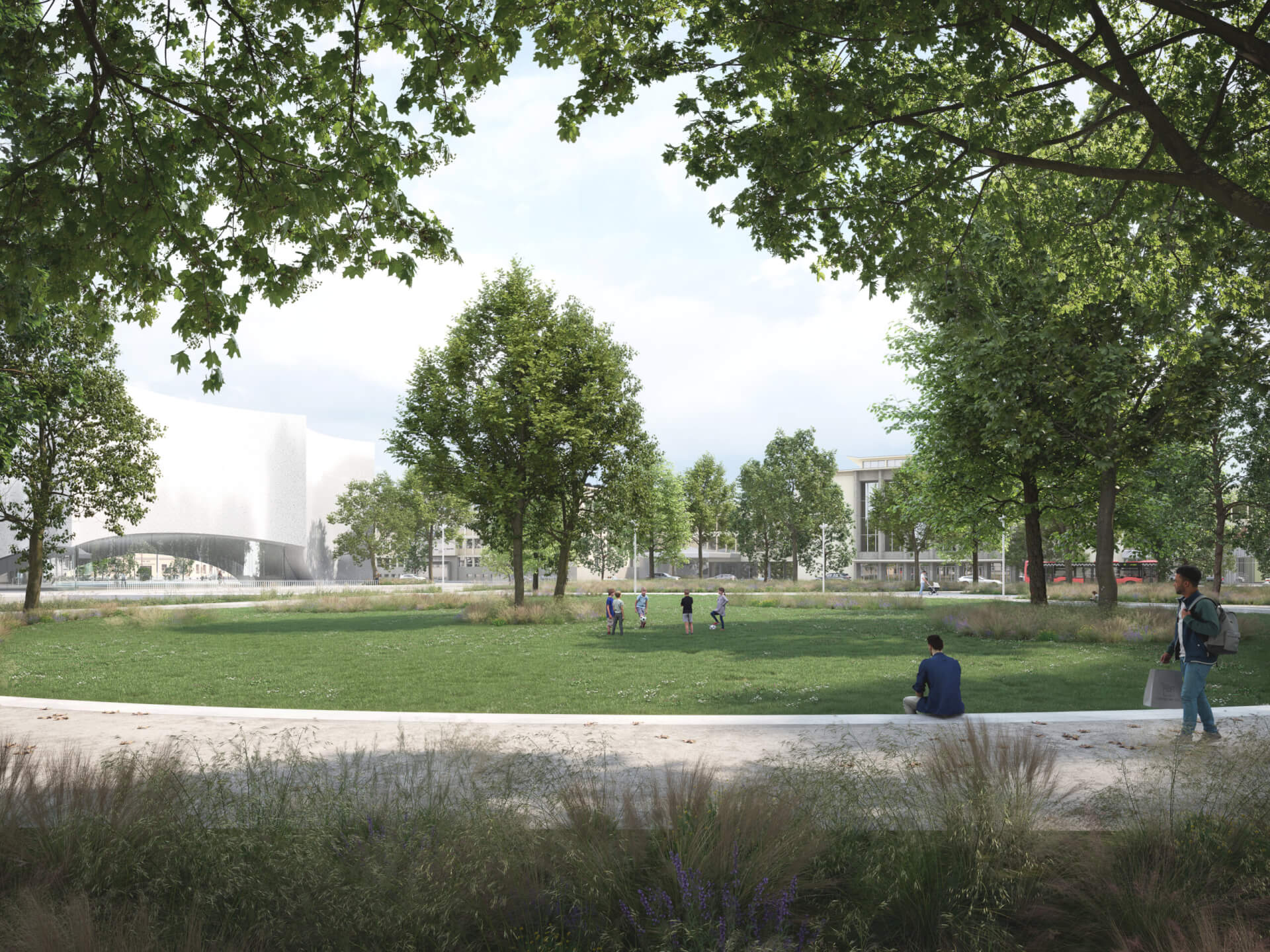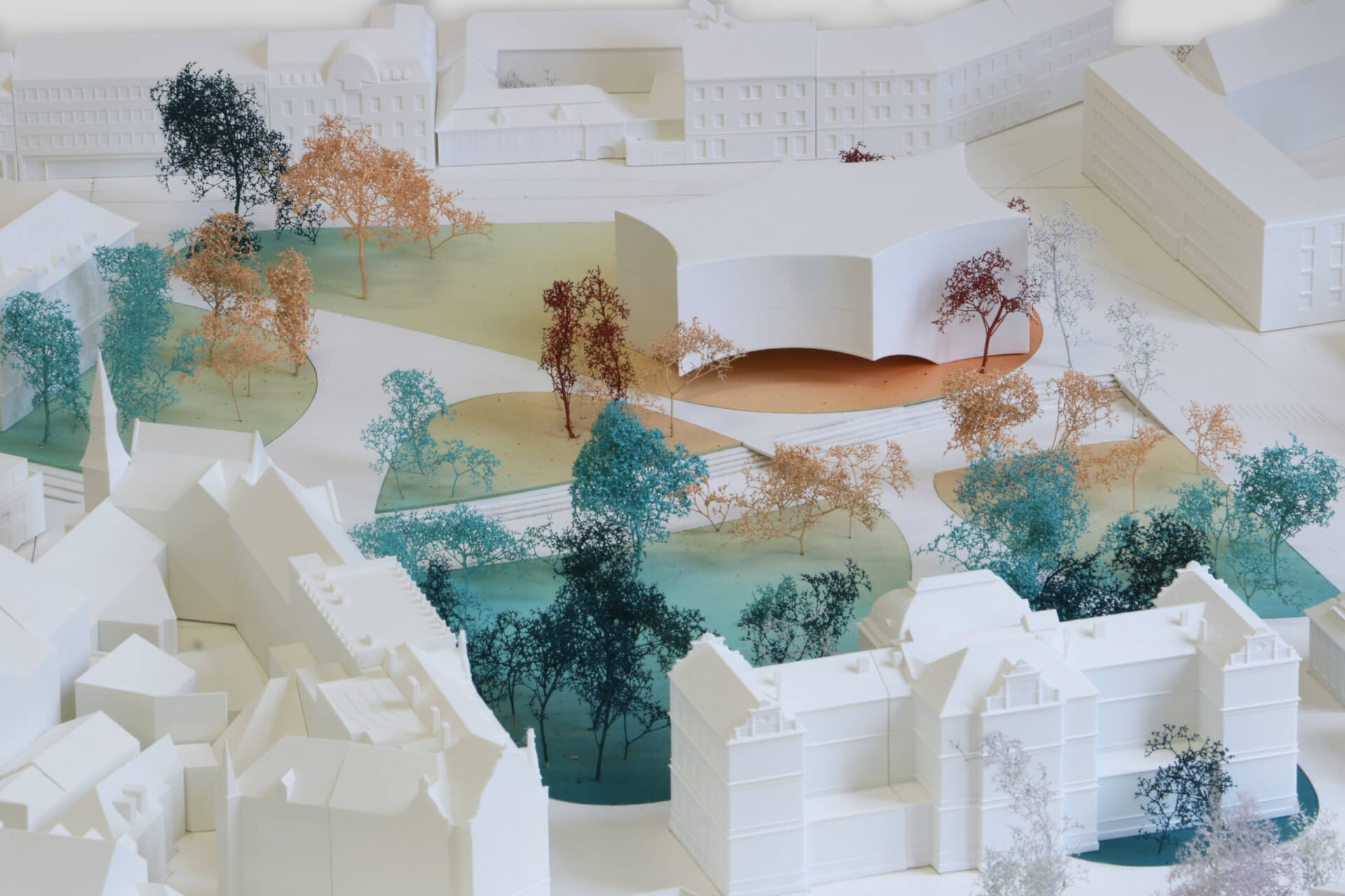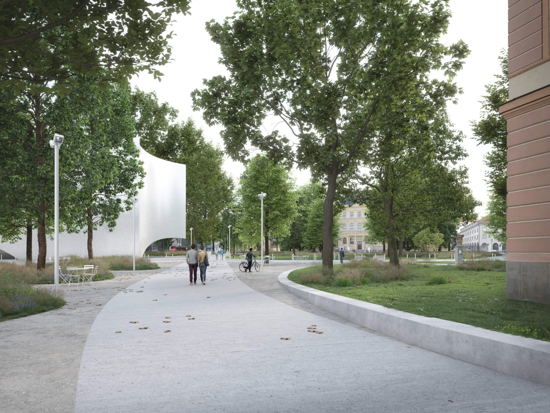 Although the stated intention of this project is to overhaul Senovážné náměstí, a square in the centre of České Budějovice (Budweis), what it really is about is creation of a park. The square is situated within what used to be a ring of fortification but what is nowadays a green ring encircling the entire historical centre of the city. That said, the square as such markedly lacks greenery, because it has been transformed over the last decades into a surface car park and an expansive area of land with no major landscaping. This is where the green ring is disrupted to accommodate the city’s infrastructure. The proposal creates an opportunity to transform the square into a park, achieve integrity of the green ring and link the city centre with the rivers Malše and Vltava.