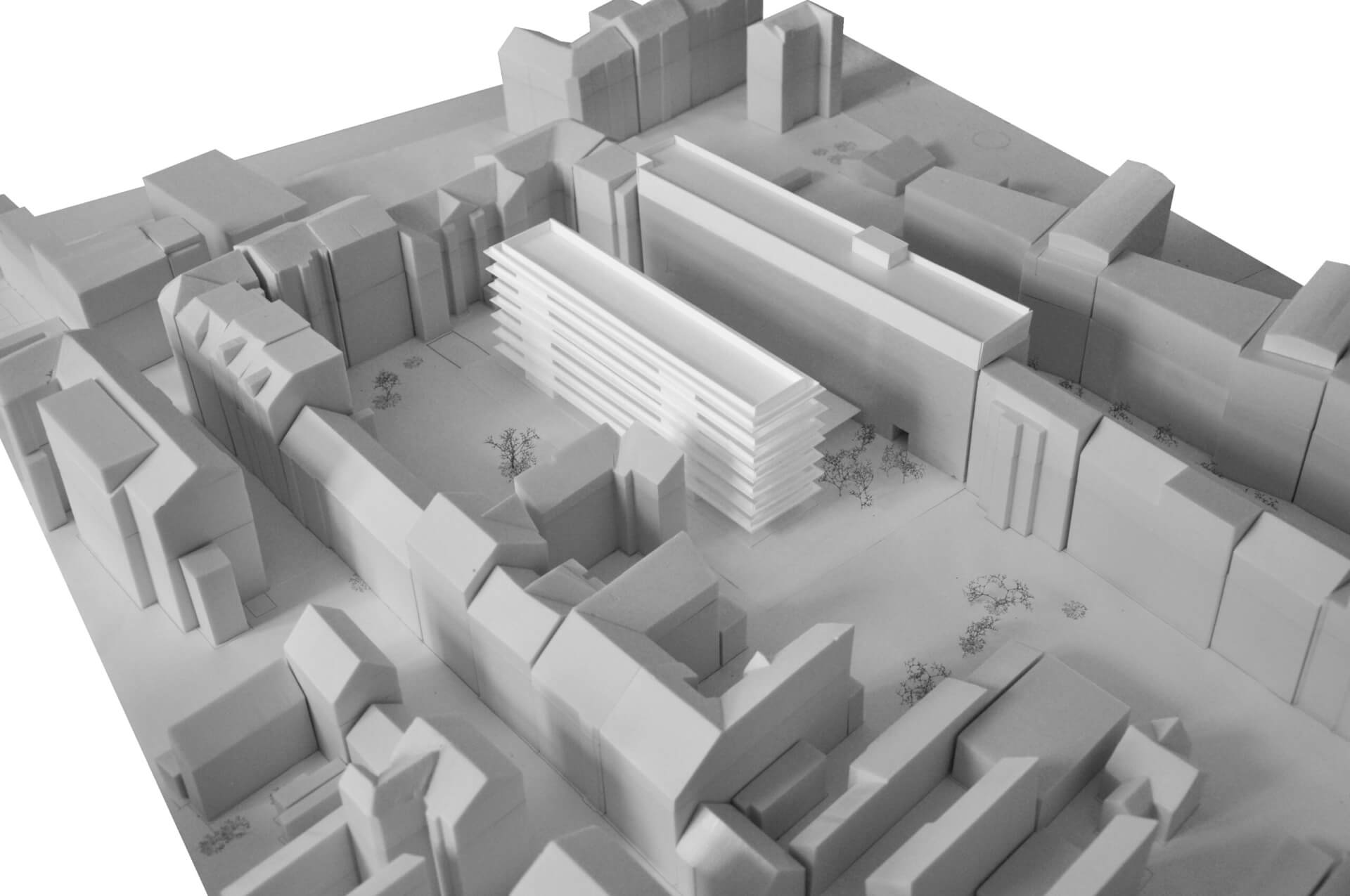 Zadáním architektonické soutěže bylo adaptovat stávající budovu a dostavět areál Generálního finančního ředitelství v Brně (Příkop 25). Již od počátku jsme situaci vnímali v rámci širšího měřítka města. Nešlo nám o samostatný areál GFR, ale především o jeho kontext. O městský blok, jehož je stávající budova GFR součástí. Nejzásadnější kvalita návrhu tak byla zakódována přímo v samotném zadání. Je to příležitost k zahušťování širšího centra města. Úřad zůstává součástí živoucího centra a jeho dostavba přitom vytváří nový potenciál k práci s městským vnitroblokem. Myslíme si, že soudobá města mají stále hodně prostoru k růstu – ne ven, ale dovnitř.